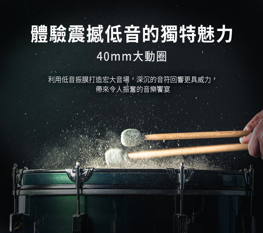 ▪️40MM大動圈,利用低音振膜打造宏大音場,感受低音獨特魅力。