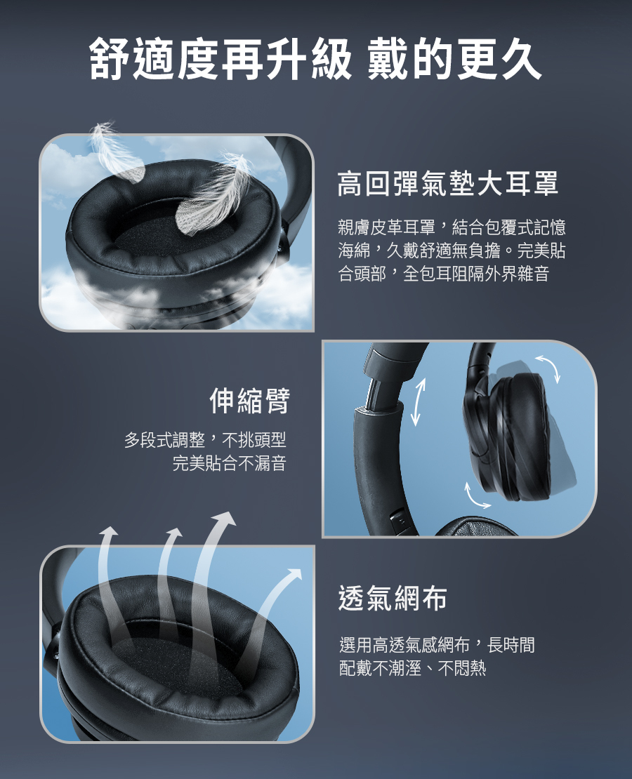 ▪️透氣不悶熱,高回彈氣墊耳罩,包覆式記憶海綿,久戴舒適無負擔,且雙摺疊好攜帶。
