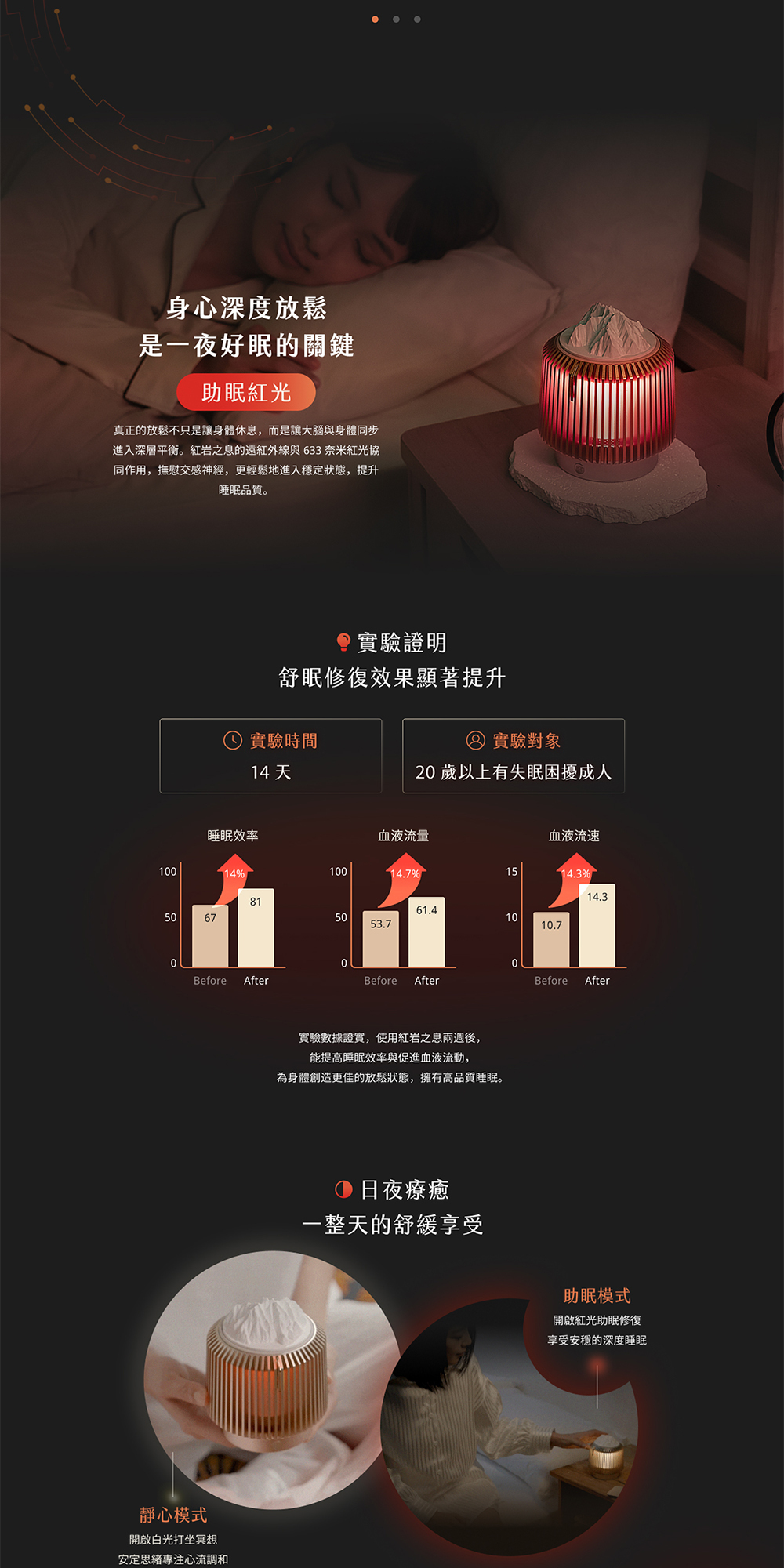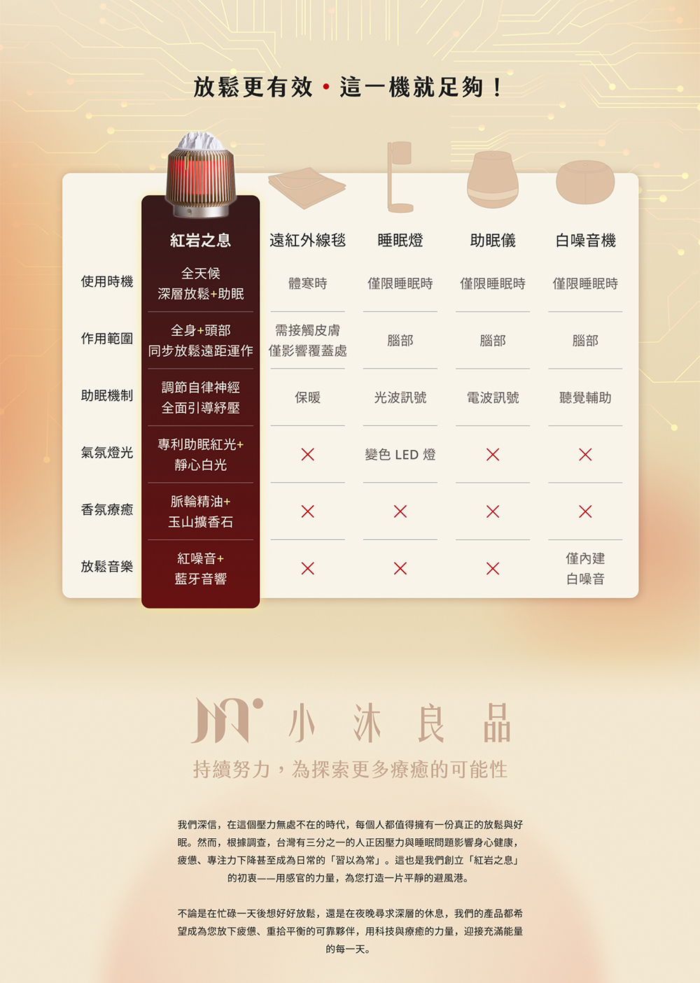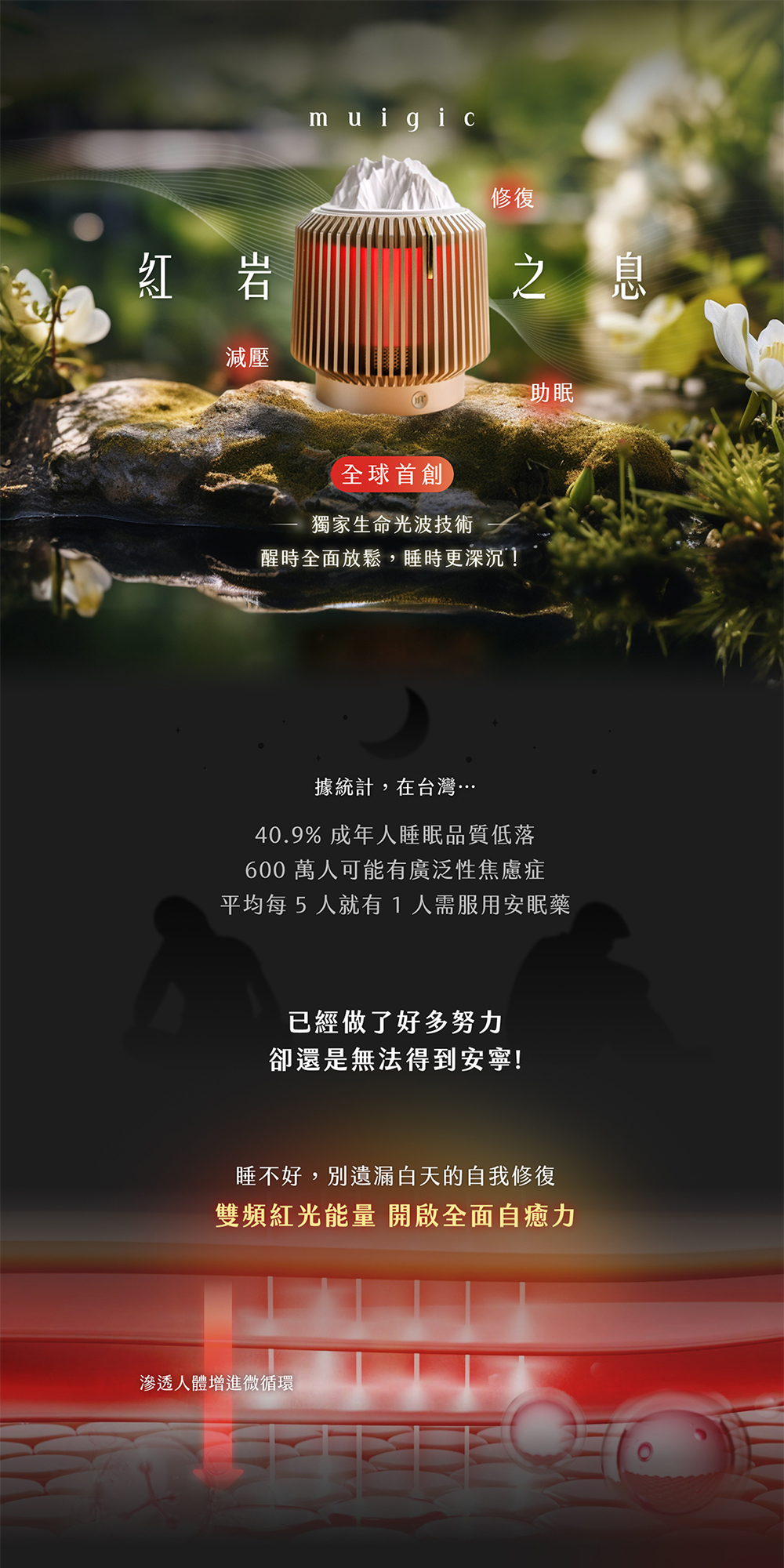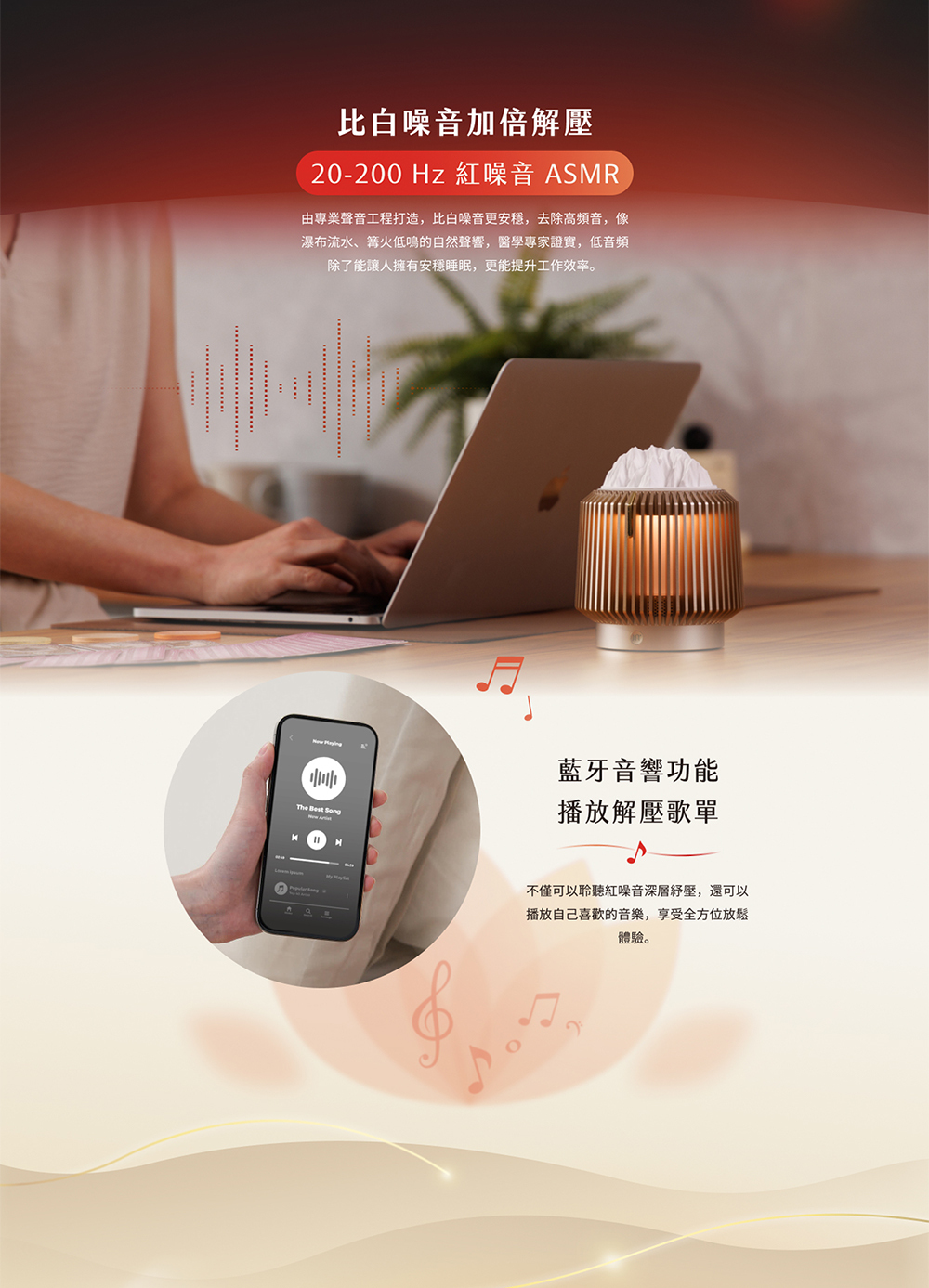 聲音與光感模擬自然節奏,有效調節情緒,紓解日常壓力。